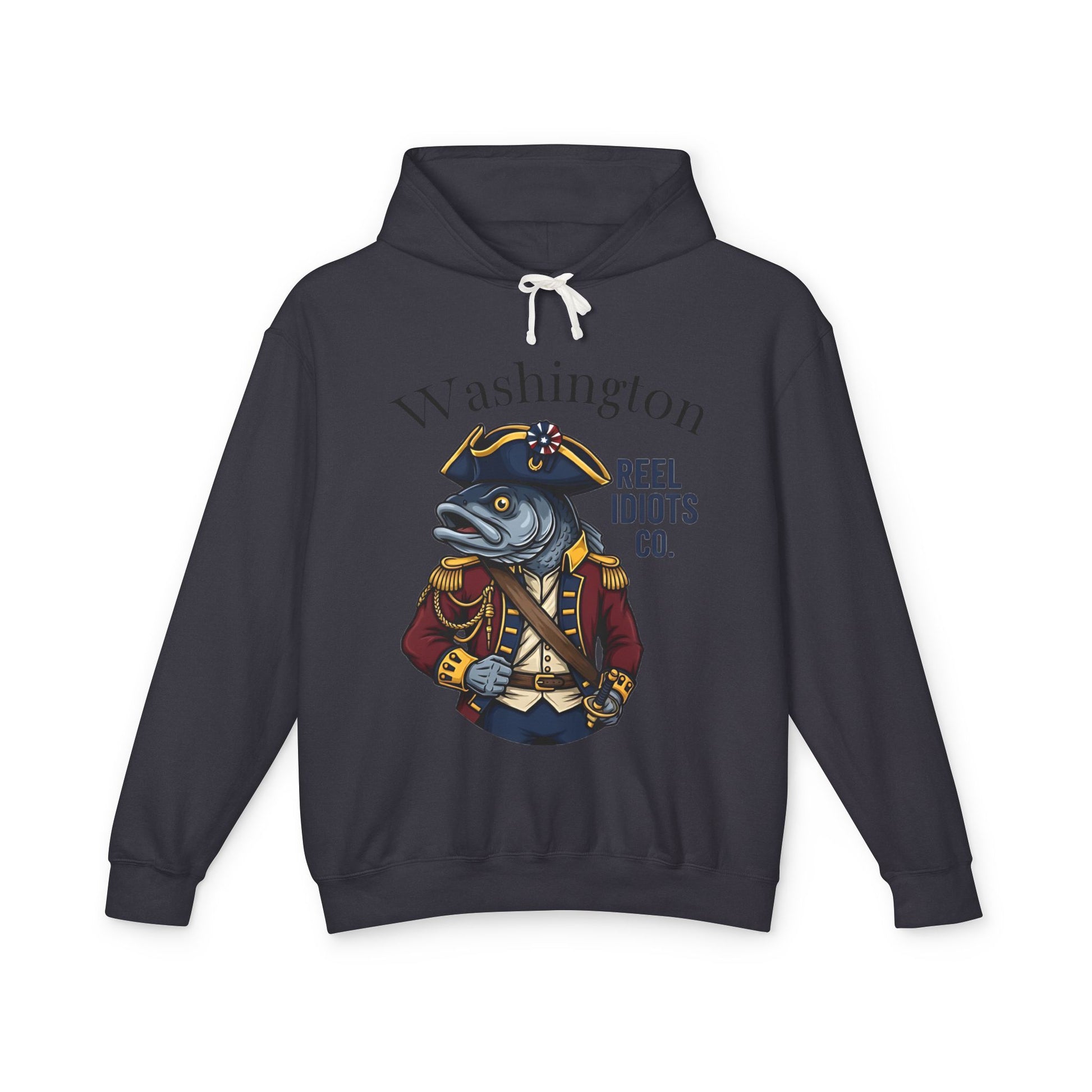 We've reimagined this historic fish as the ultimate Commander, proudly dressed in a Revolutionary War general's uniform and a tricorn hat. Rendered in brilliant burgundy and gold, this design is a powerful and clever tribute to leadership, history, and unwavering hometown pride. It’s the perfect gear for the fan who commands respect and honors the spirit of the nation's capital.